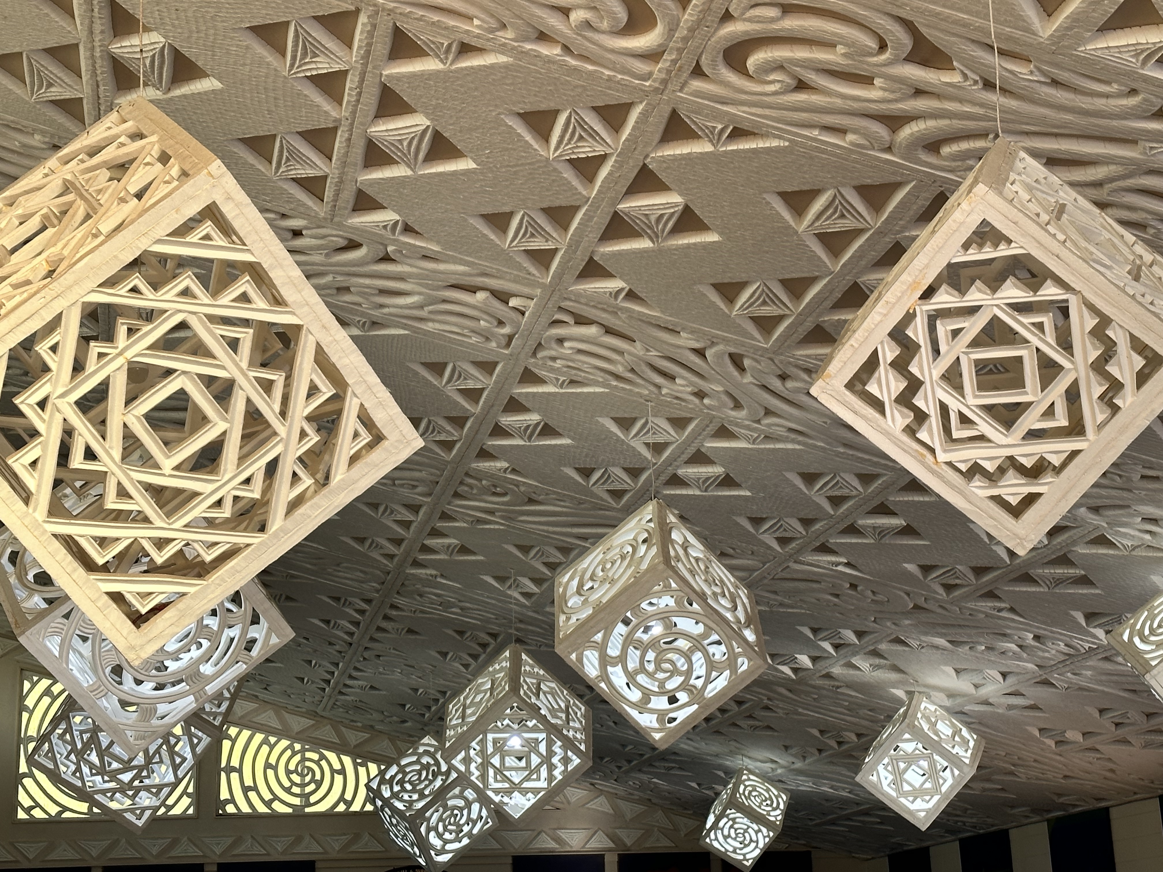 In spite of their ongoing challenges, kaimahi remain positive, while over them hang the decade-old light shades made from recycled polystyrene, designed by Uncle George Nuku, who now resides in Paris and has had his work displayed in the Louvre.